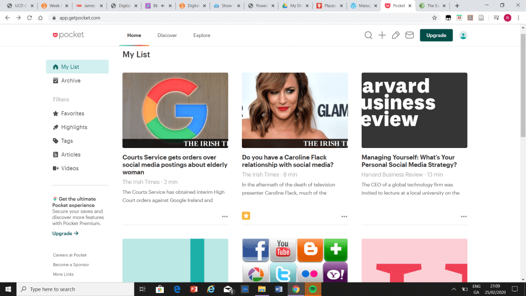 Managing Information Through Social Media ‘When you find something you want to view later, put it in Pocket.’ Share this: Share on X (Opens in new window) X Share on Facebook (Opens in new window) Facebook Like Loading... Pages: 1 2 3
